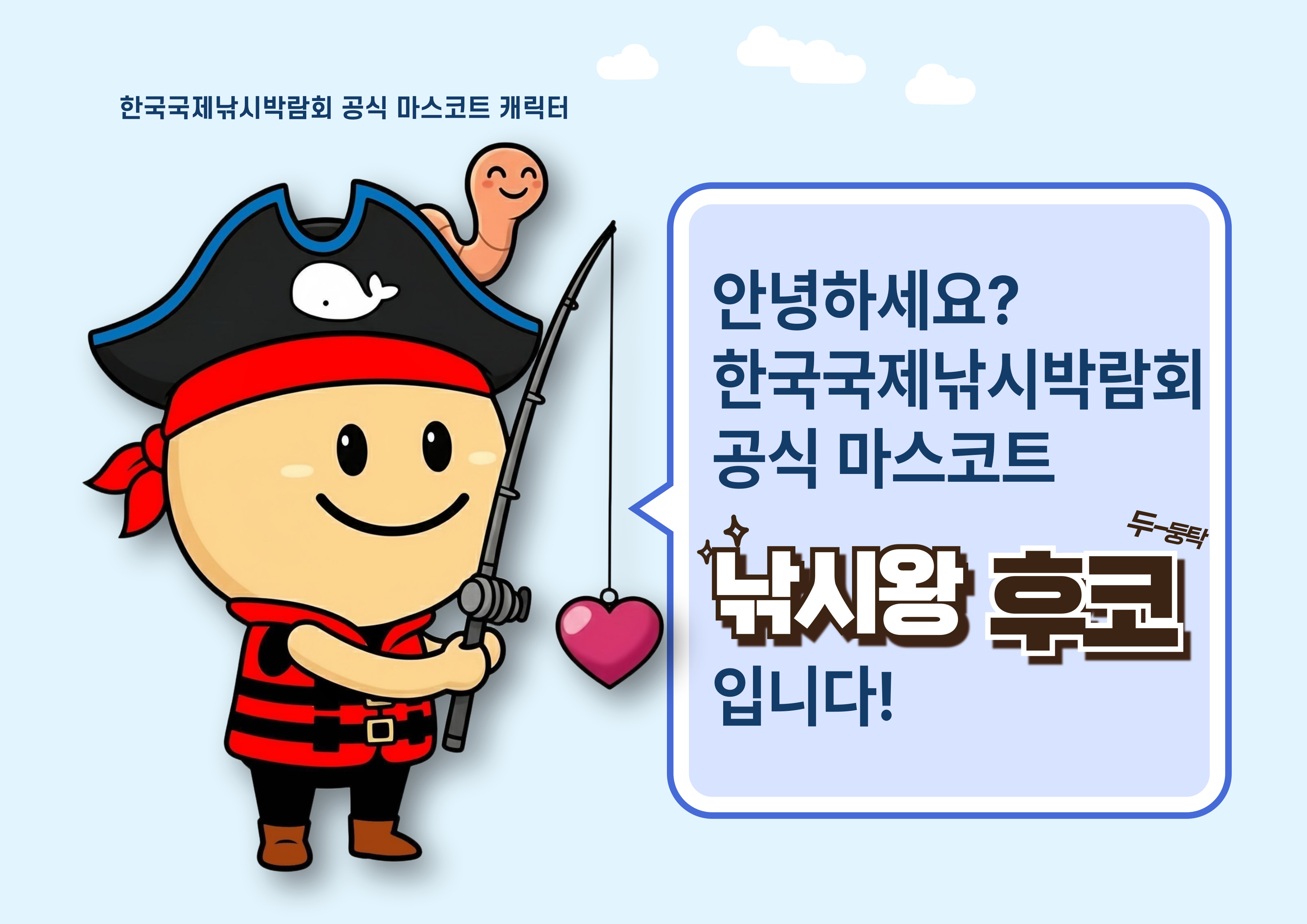 안녕하세요? 저는 한국국제낚시박람회 공식 마스코트, 낚시왕 후코예요!